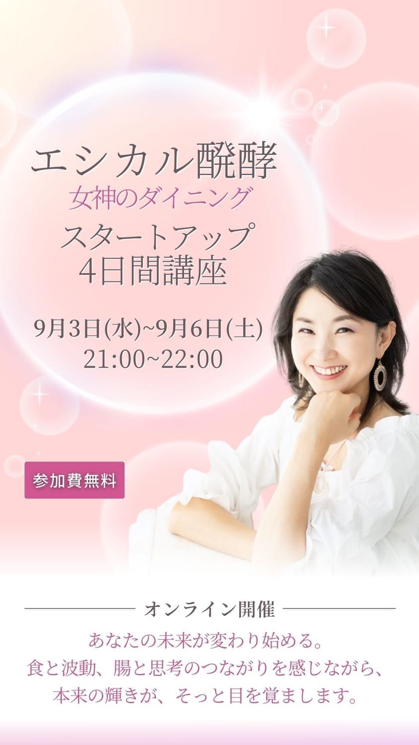 「今の自分を変えたい」 そう感じている方へ『エシカル醗酵 女神のダイニングスタートアップセミナー』では、 “腸・思考・波動”という3つの鍵をやさしくひも解きながら、 心・からだ・エネルギーのバランスを整えるきっかけをお届けします。